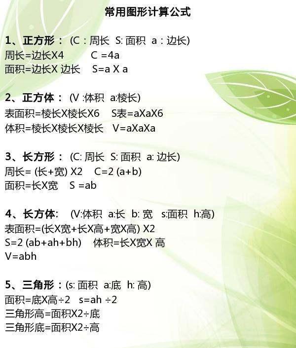 8、面积:表示一个平面图形的大小,通常以平方单位表示。